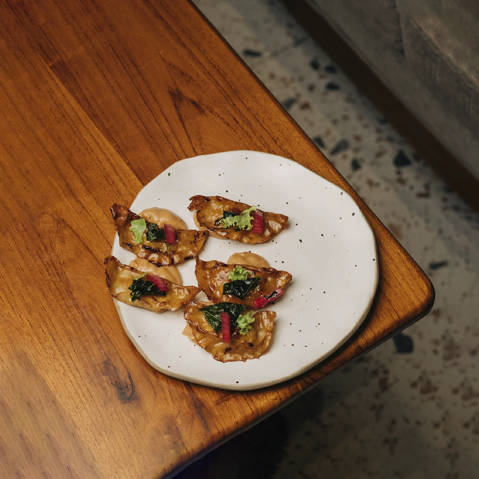Steamed gyoza, served with Thai sauce
